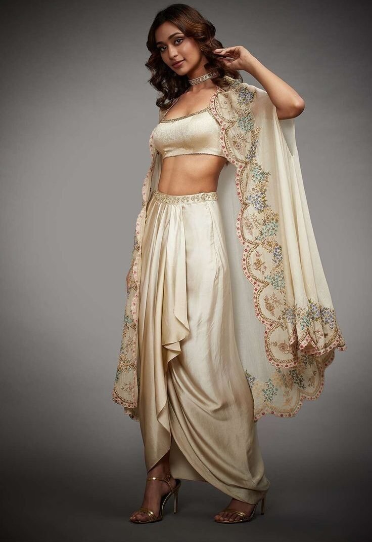 In a world where Indian fashion is evolving beyond the boundaries of the traditional, this ethereal cream dhoti set emerges as a breath of fresh air—fusing minimalism, comfort, and high-octane glamour. It’s the kind of outfit that celebrates the elegance of Indian heritage while seamlessly catering to the sensibilities of the modern woman. Light, graceful, and opulently detailed, this look is ideal for festive events, destination weddings, mehendi soirées, or intimate celebrations where style and ease are equally important.