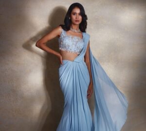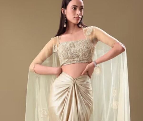 This fusion drape offers ease without compromising on drama—ideal for women who want the essence of a saree without the hassle of classic draping techniques. It feels youthful, bold, and refreshingly modern.