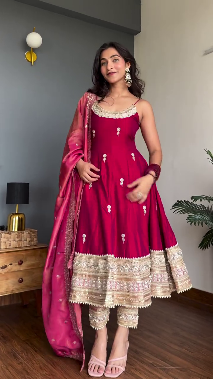 Ideal for shoppers searching for red Anarkali suit for women, festive ethnic wear, embroidered party suits, wedding guest outfits, and traditional Indian dresses with dupatta. Style with statement earrings and heels for a stunning celebration ensemble.