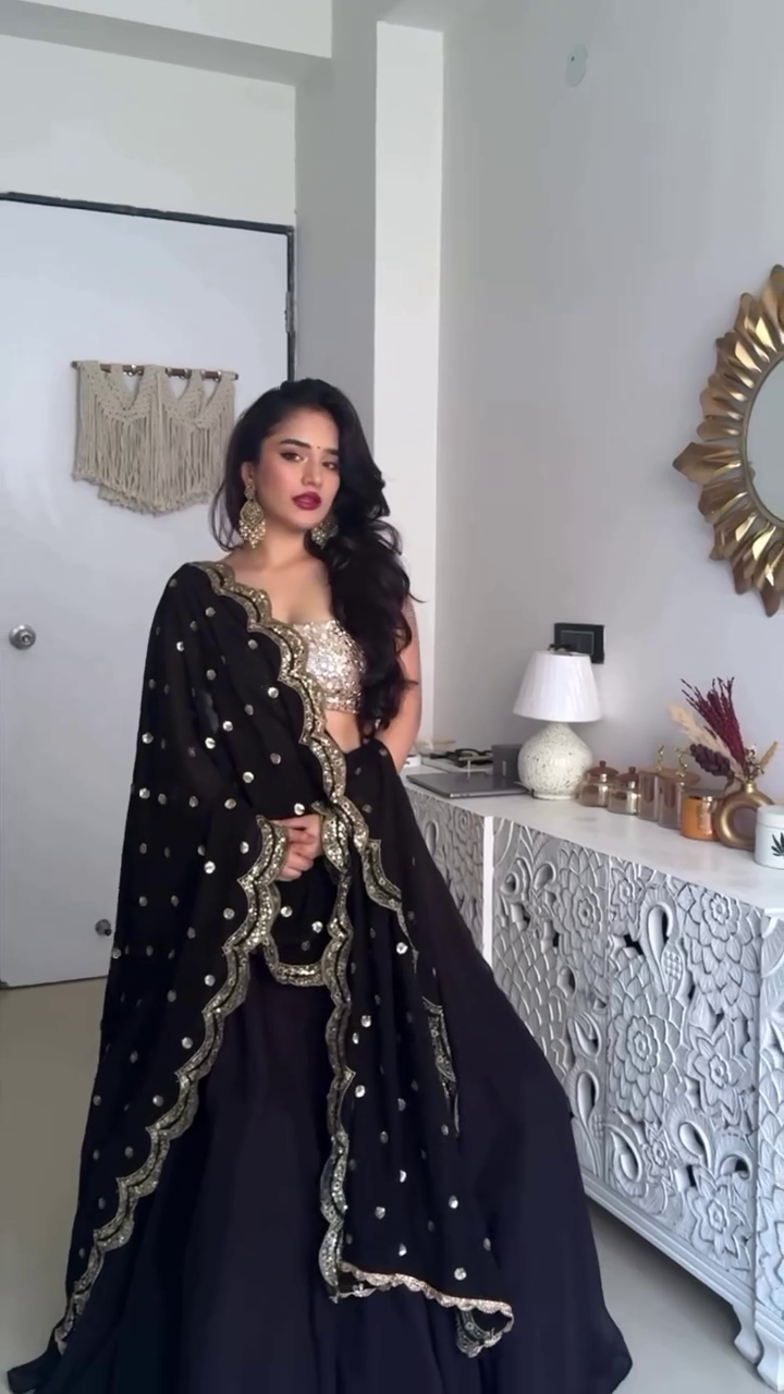 Elevate your festive and evening wardrobe with this breathtaking black embellished saree paired with a dazzling gold sequin blouse. Designed for women who love bold elegance and refined glamour, this outfit is a perfect blend of traditional charm and contemporary sophistication. Ideal for weddings, cocktail parties, festive celebrations, receptions, and high-end evening events, this saree promises an unforgettable style statement.