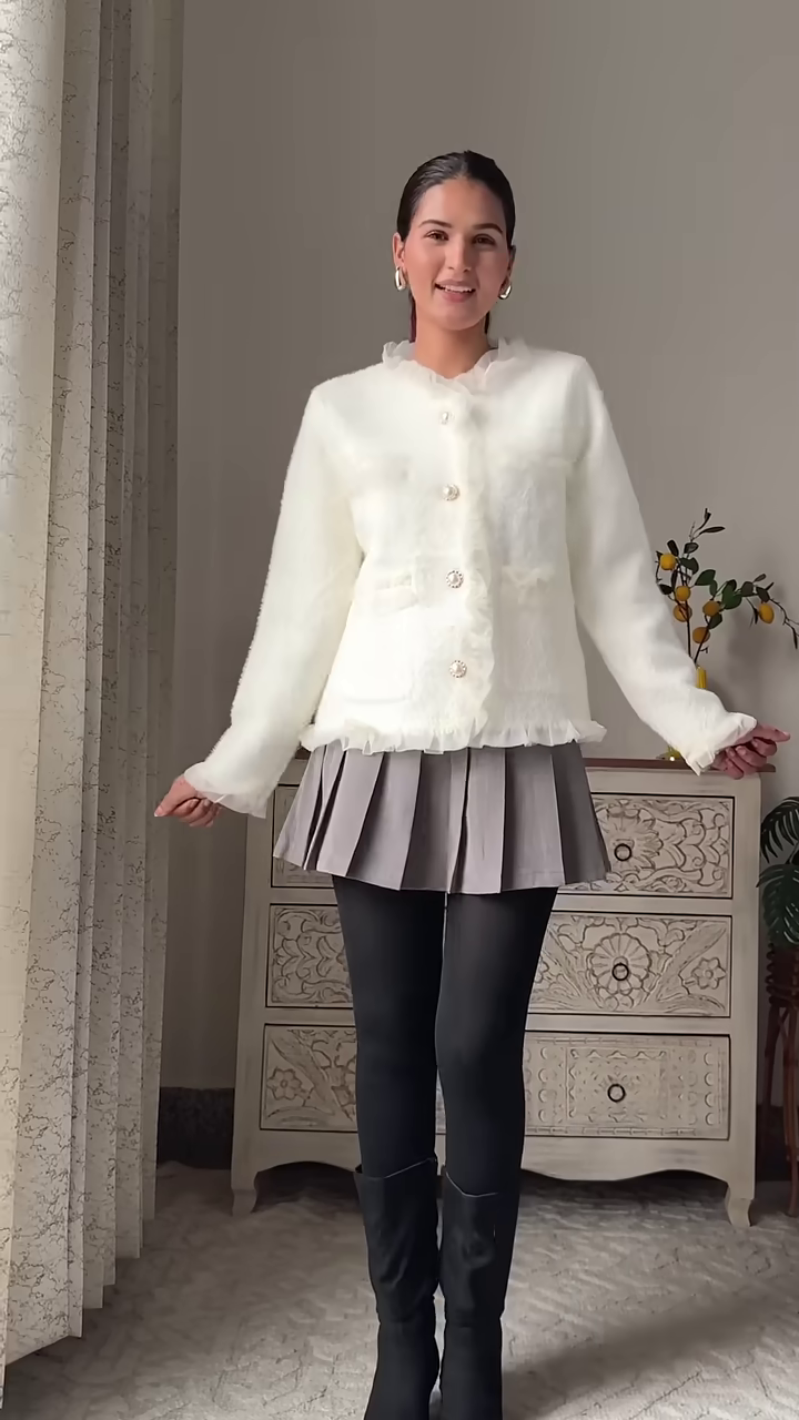 Festive without being flashy, the sweater adds charm to family dinners or outings.