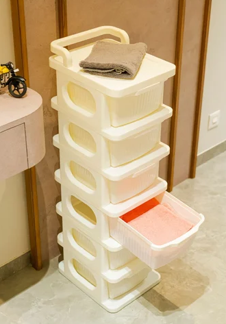 Maximize your storage with this slim 6-layer vertical storage drawer tower. Designed to fit in narrow spaces, this organizer provides multiple drawers to neatly store clothes, accessories, toys, office supplies, or household items. The tall, space-saving design makes it perfect for bedrooms, bathrooms, closets, and small apartments.