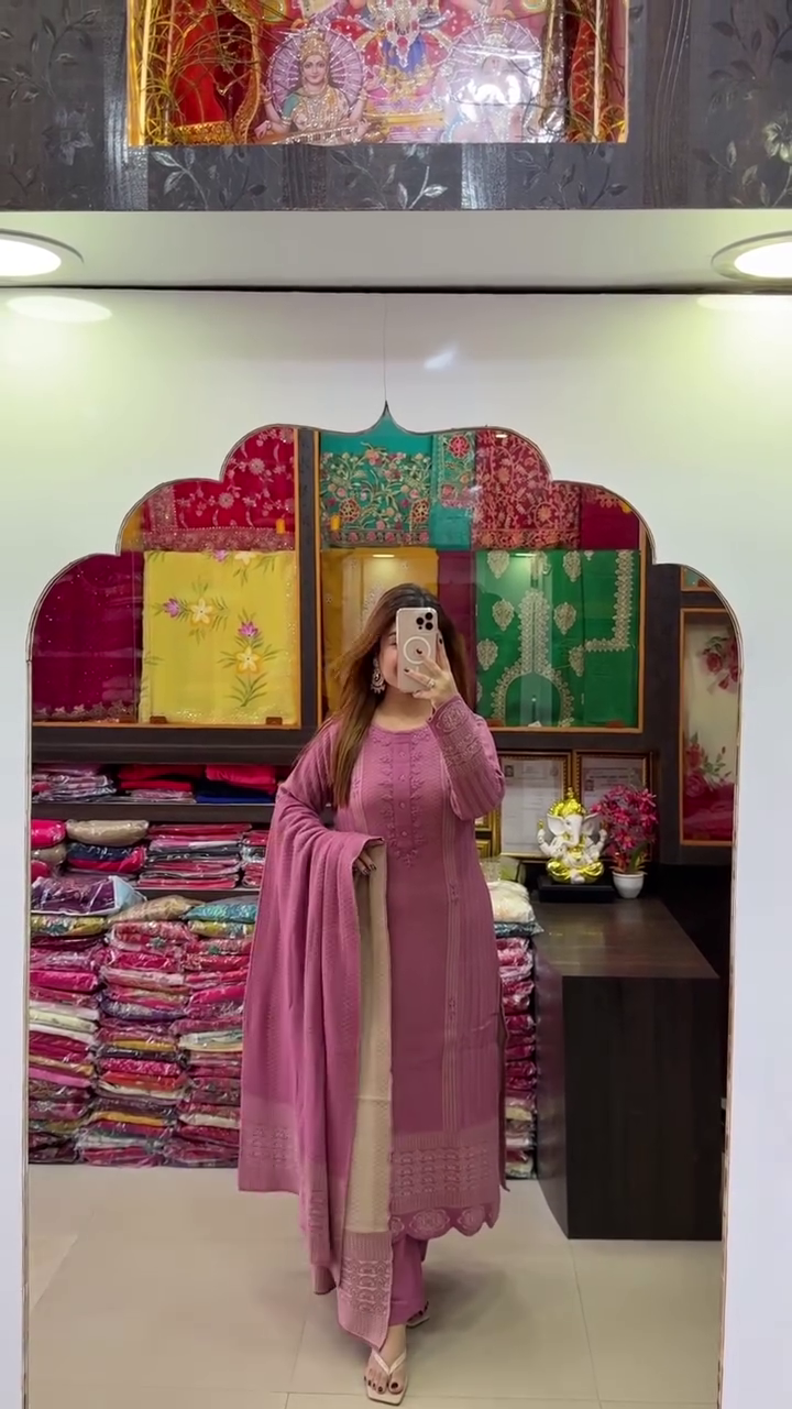 Step into understated elegance with this beautifully crafted mauve embroidered kurta set paired with a coordinated dupatta. Designed for women who appreciate subtle colors, fine detailing, and timeless silhouettes, this ethnic ensemble effortlessly blends comfort with sophistication, making it a perfect choice for festive occasions, family gatherings, office wear, and graceful everyday styling.