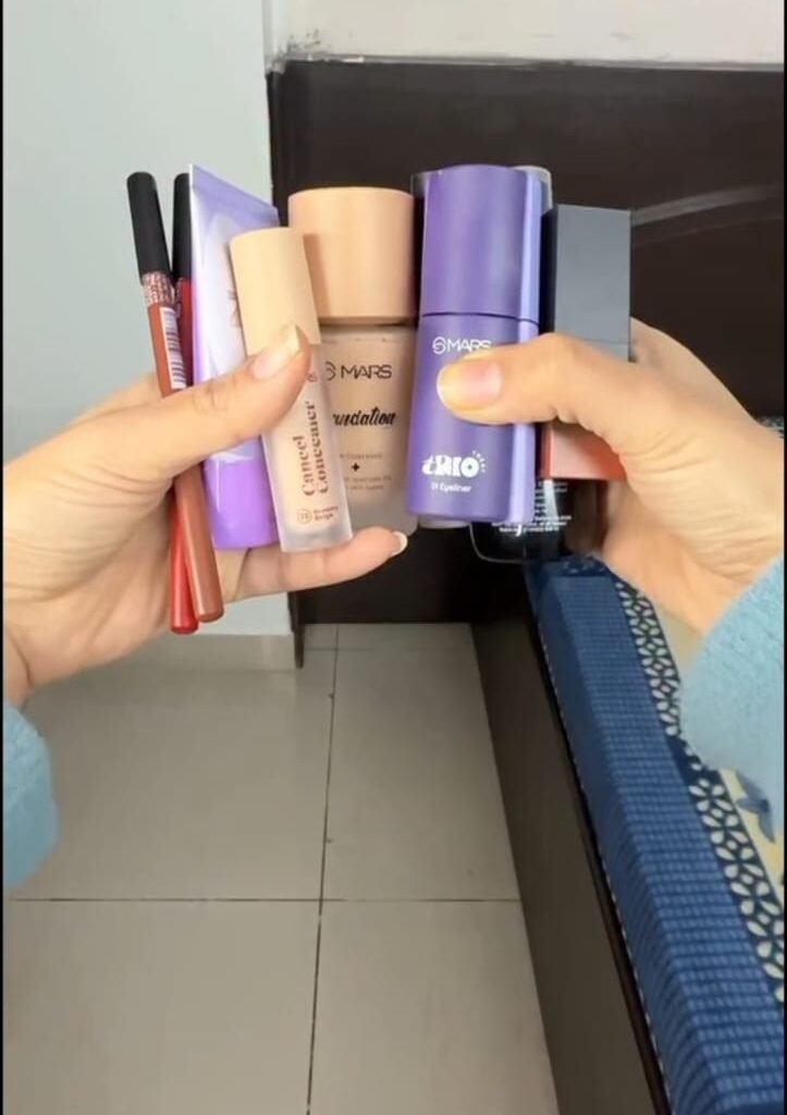 A compact collection of everyday makeup essentials featuring foundation, primer, lipstick, and eye products. The set includes sleek, travel-friendly bottles and tubes designed for quick, complete looks. Perfect for daily wear or on-the-go touch-ups, this kit covers base, lips, and eyes in one convenient bundle.