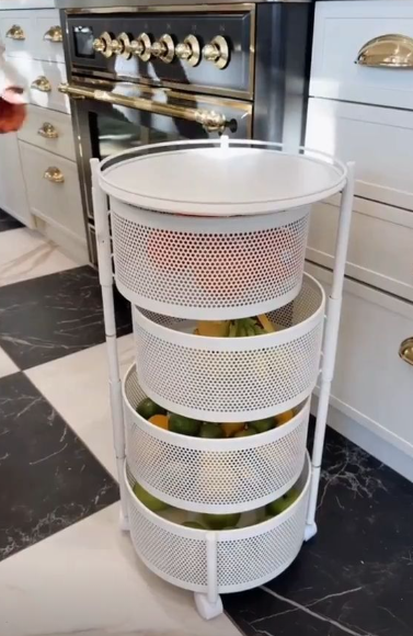 Keep your kitchen neat and clutter-free with this 4-tier rotating storage trolley. Designed with breathable mesh baskets, it is perfect for storing fruits, vegetables, onions, potatoes, snacks, and other daily essentials. The smooth 360-degree rotation allows easy access from all sides, while the compact vertical design saves space in small Indian kitchens. Sturdy, practical, and easy to move, this multipurpose organizer is ideal for modern homes that value smart storage solutions.
