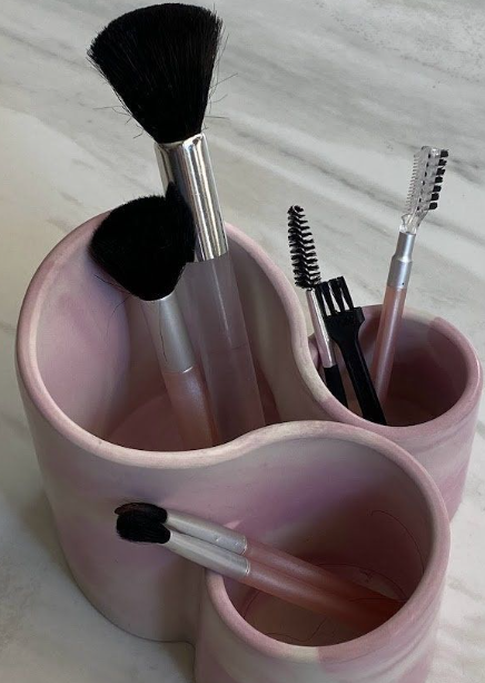Pastel Pink Ceramic Makeup Brush Holder with Divided Compartments