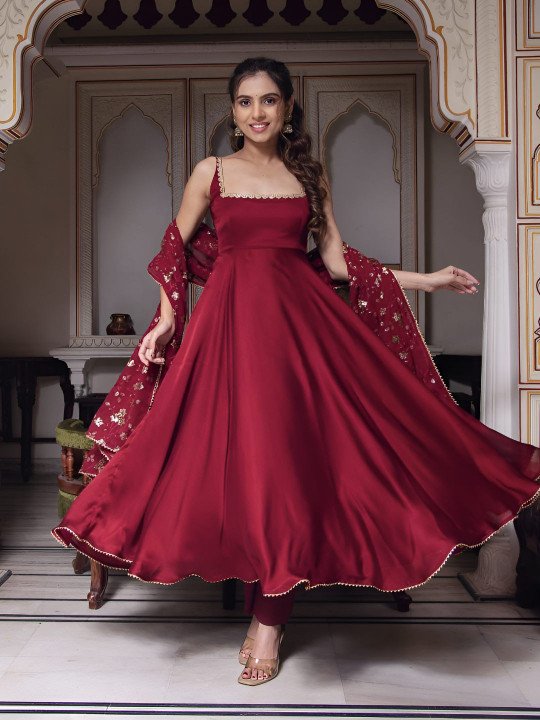 Solid Anarkali Kurta with Trousers & Dupatta – Detailed 1300-Word Description