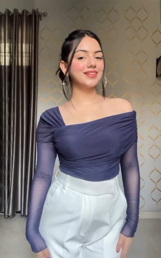 This trendy navy blue one-shoulder top is designed with a ruched front and sheer full sleeves, giving it a chic and modern appeal. The asymmetrical neckline adds an edgy touch, making it a perfect choice for parties, casual outings, or evening events. Pair it with high-waisted trousers, skirts, or jeans for a fashionable statement look.