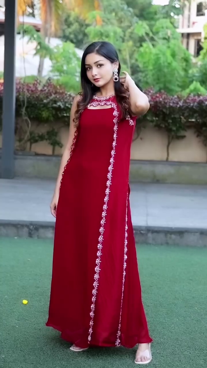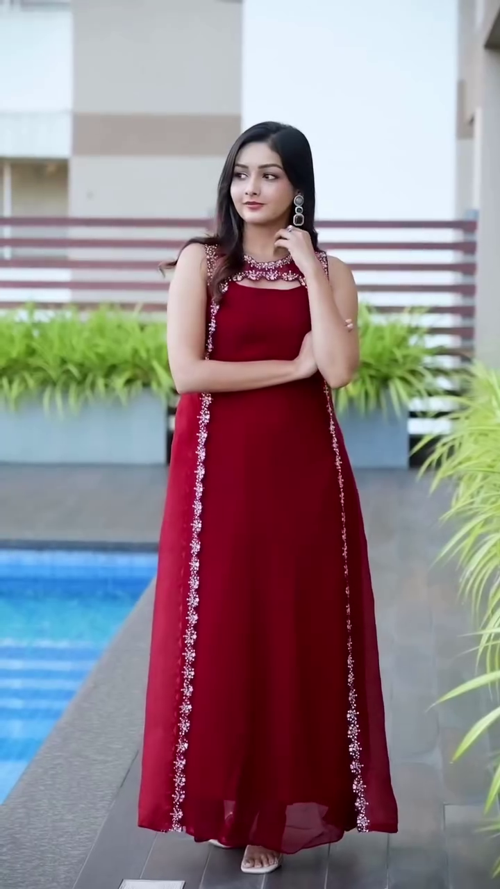 Make a graceful statement with this stunning wine red sleeveless maxi gown, designed for elegant evening and party wear. Featuring delicate embellished detailing along the neckline and side panels, this dress offers a sleek, flattering silhouette with a flowy hemline for effortless movement. Crafted from lightweight, premium fabric, it is perfect for cocktail parties, weddings, receptions, and special occasions. Sophisticated, feminine, and timeless, this gown pairs beautifully with statement earrings and heels for a glamorous look.