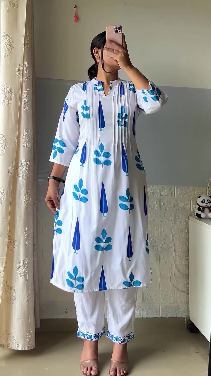 Refresh your everyday ethnic wardrobe with this women’s blue cotton kurta set featuring elegant embroidered accents and matching straight pants. Designed for comfort and effortless style, this two-piece outfit is perfect for daily wear, office looks, casual outings, and relaxed festive gatherings. The rich blue color adds depth and vibrancy, while the subtle white embroidery brings a handcrafted, traditional touch.