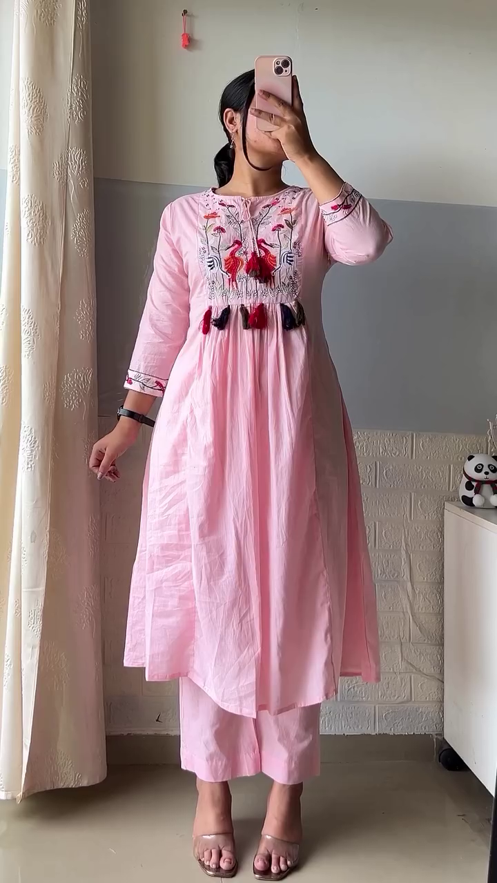Style this blue embroidered kurta set with statement earrings, flats, or heels for different occasions. Suitable for workwear, day events, and everyday ethnic fashion, it offers a perfect blend of tradition and modern simplicity. Comfortable, versatile, and stylish, this cotton kurta and pant set is a dependable go-to for polished daily dressing.