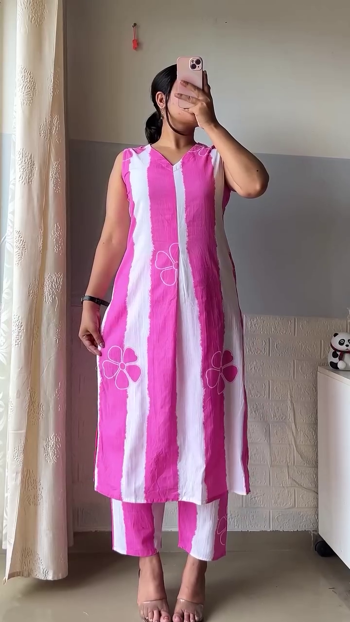 Paired with coordinated straight-fit pants, this kurta set creates a clean and balanced profile that suits a wide range of body types. The lightweight cotton fabric supports airflow and comfort, making it ideal for warm weather and long hours of wear. The minimal yet refined styling allows you to dress it up or down with ease.