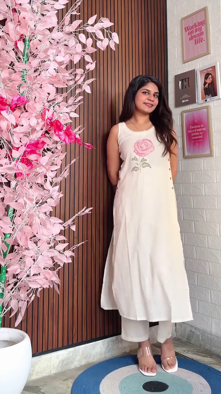 The coordinated pants complement the kurta perfectly, creating a balanced outfit that is ideal for casual gatherings, festive occasions, brunch outings, or daily ethnic wear. The minimal yet stylish design makes it easy to accessorize with earrings, bangles, or a dupatta for a more dressed-up look.